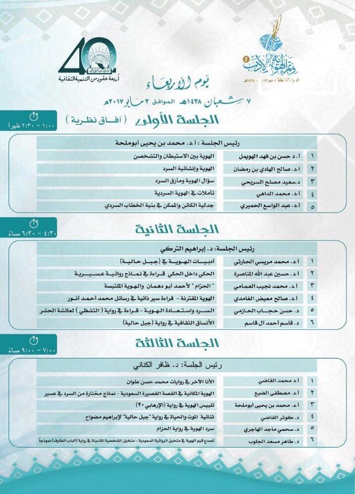 جلسات مؤتمر الهوية والأدب 2 1438 مؤتمر الهوية والأدب 2 الافتتاح والجلسة الأولى بالتعاون مع جامعة الملك خالد ندوة بعنوان حوا الحضارات ali asiri فعاليات مشابهة ضمن الفعاليات الصيفية بأبها لقاء مفتوح مع أصحاب السعادة أعضاء مجلس الأمناء بمركز الملك عبد الله بن عبد العزيز لخدمة اللغة العربية ضمن الفعاليات الصيفية بأبها لقاء مفتوح مع أصحاب السعادة أعضاء مجلس الأمناء بمركز الملك عبد الله بن عبد العزيز لخدمة اللغة العربية شاهد المزيد ضمن الفعاليات الصيفية بأبها دورة القيادة المجانية لأعضاء النادي ورواد العمل الخيري والتنمية ضمن الفعاليات الصيفية بأبها دورة القيادة المجانية لأعضاء النادي ورواد العمل الخيري والتنمية شاهد المزيد ضمن الفعاليات الصيفية بأبها أمسية اللجنة الثقافية لمحافظة المجاردة ضمن الفعاليات الصيفية بأبها أمسية اللجنة الثقافية لمحافظة المجاردة شاهد المزيد